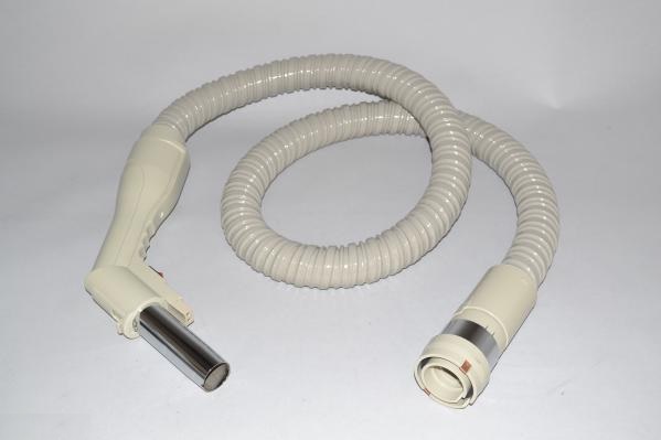 This is the Electrolux Plastic Body Canister 2100 Style Pistol Grip Style Electric Hose Assembly with Swivel. Hose measures 6 feet in length and is Beige in color and is equipped with a swivel handle to prevent kinking and to move with you as you vacuum.